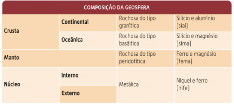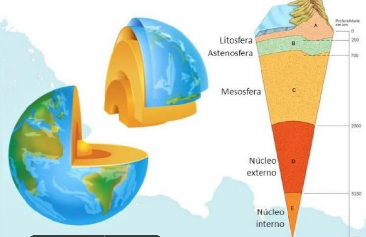 ✦ Crusta: Composição maioritariamente granítica nos continentes e basáltica nos oceanos.