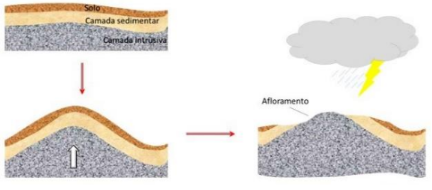 Por ação dos movimentos tectónicos, rochas formadas no interior do planeta afloram, ficando acessíveis para observação.