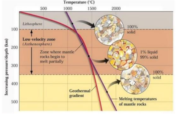-> Astenosfera: Semifluida (99% sólido, 1% líquido).