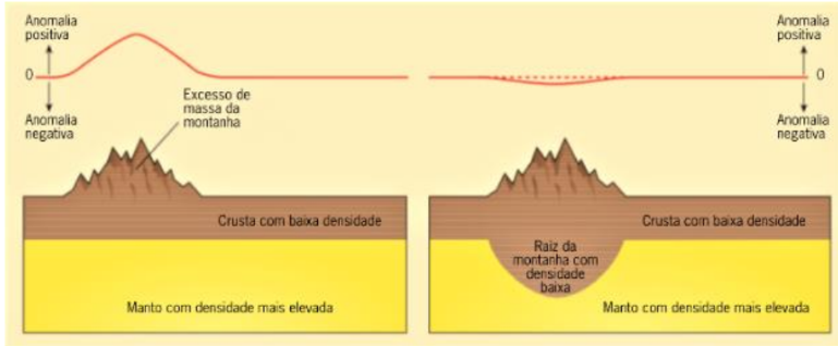 Nota: A ocorrência de uma anomalia gravimétrica indica que as rochas dessa região têm densidade diferente do que é considerado pelo modelo teórico.