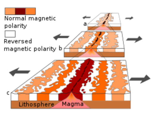 Os fundos oceânicos de natureza basáltica, apresentam assim, um importante registo do magnetismo fóssil, que mostra que o campo magnético sofreu várias inversões.