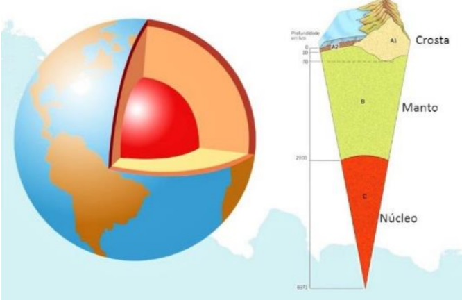 O modelo físico considera a Terra constituída por quatro zonas que apresentam características físicas distintas: