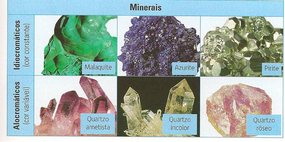 - Idiocromáticos: minerais que apresentam uma cor constante;